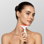 Прибор с микротоковой технологией предназначен для коррекции возрастных изменений шеи: кольцевидных горизонтальных морщин, провисаний кожи и ослабленного мышечного каркаса. Микротоковая технология EMS MicroCurrent искусственно повышает тонус платизмы — широкой веерообразной мышцы, которая формирует чёткий шейно-подбородочный угол и стройную линию шеи. В результате укрепления мышечного каркаса уходят возрастные деформации: менее видимыми становятся внешняя дряблость, глубокие залегания морщин и «кольца Венеры». Под воздействием термолифтинга и микровибраций подтягивается контур нижней трети лица, снижается задержка жидкости и в оптимальном состоянии сохраняется тонус мягких тканей. Фототерапия активизирует омолаживающие, ресурсосберегающие и защитные функции кожи. За счёт плавного изгиба рабочей поверхности прибор легко скользит по поверхности кожи и захватывает все треугольники и границы шеи. При необходимости можно сместить фокус и, двигаясь в направлении основных массажных линий, использовать прибор в области лба, подбородка и скул.