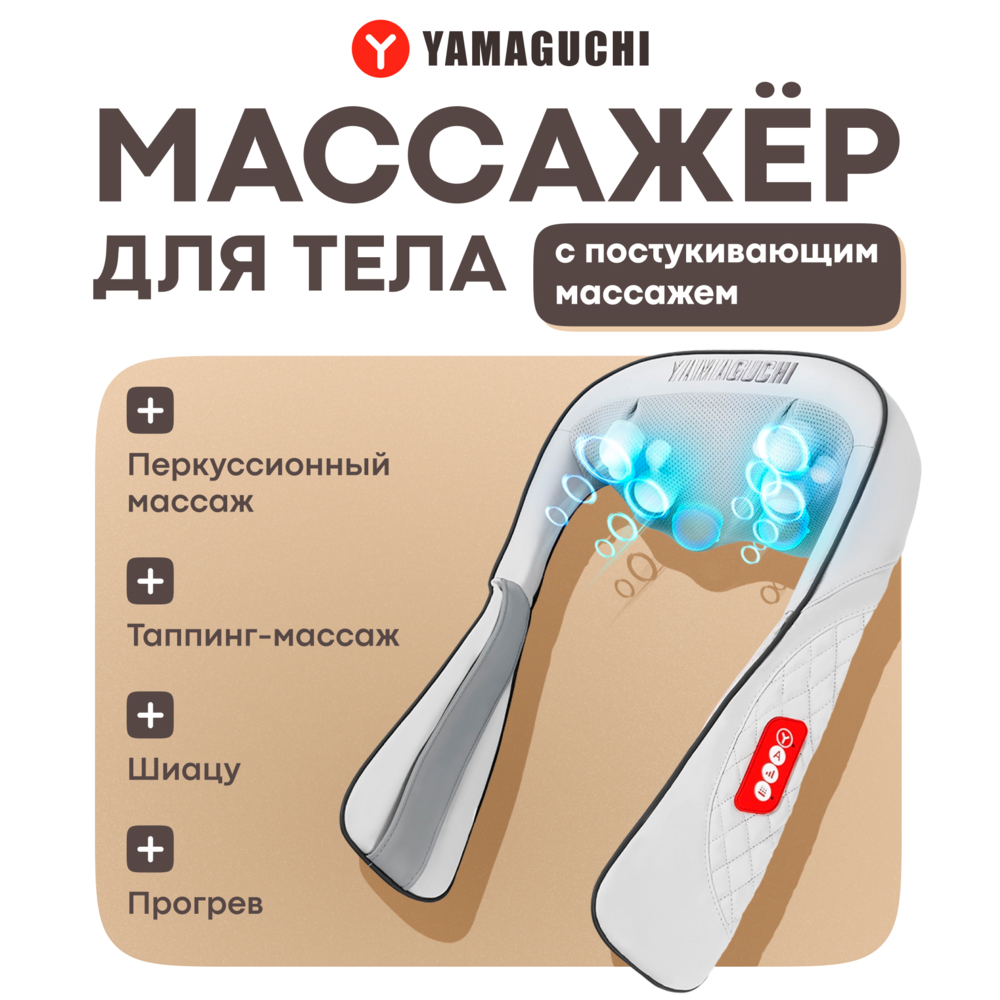 Массажер для тела Yamaguchi Yasumi создан для комплексного расслабления всего организма. Он сочетает разминающий массаж и мягкую перкуссию, поэтому подходит как для глубокого воздействия после активного дня, так и для ежедневного расслабления дома.